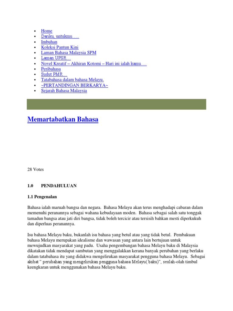 Salah satu aspek yang sering di tanya dalam peperiksaan bahasa malaysia atau bahasa melayu pmr dan spm adalah dari sudut tatabahasa iaitu kata kerja. There are many similarities between bahasa malaysia / melayu and bahasa indonesia due to our common colonial histories. Bahasa malaysia itu masih memegang teguh kosa kata bahasa melayu, namun untuk bahasa gaul mereka lebih banyak menyerap kosa kata bahasa inggris. Bahasa melayu atau bahasa malaysia. Bahasa melayu is an official language in malaysia.
