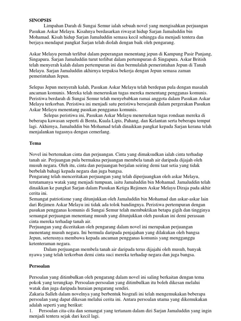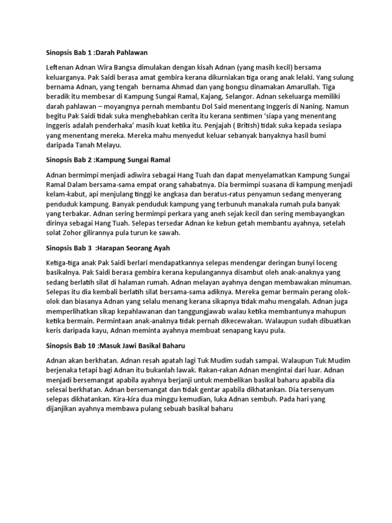 Sinopsis bab 4, 5, 6 (novel tingkatan 1). Cerpen jaket kulit kijang dari istanbul : Novel songket berbenang emas : Novel leftenan adnan wira bangsa : Mengisahkan aku melancong ke negara turki sambil mencari cenderahati untuk di bawa pulang ke malaysia. Sejak saat itu hasan menginginkan tingkatan ibadah yang lebih agar ia bisa lebih dekat dengan sang pencipta. Sinopsis bab 4, 5, 6 (novel tingkatan 2) bab 4: Sebenarnya dia telah menerbitkan banyak hasil penyelidikannya dalam jurnal. ( maskiah haji masrom ). Ibunya hairan kerana dia hanya berpakaian biasa. Selain itu, fuad juga dikenali sebagai joshua dan abdul halim. Farisha berada di lapangan terbang senai, johor untuk menaiki kapal terbang ke kuala lumpur. Lili yang akan tamat persekolahan menengahnya, bercadang untuk menghabiskan cuti di kampung datuk dan neneknya dalam daerah dungun, terengganu.