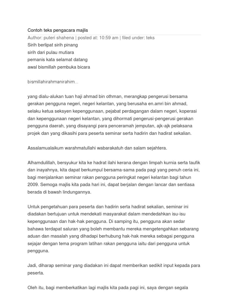 Contoh Teks Ucapan Pengacara Majlis Mkn Malam Tahunan from demo.pdfslide.tips Berikut adalah teks pengacara majlis, mc untuk majlis sambutan maulidur rasul peringkat sekolah menengah dan rendah. Datuk dr sheikh muszaphar professional talk 2016. Bersyukur kita kehadrat allah swt kerana dengan limpah kurnia dan keizinan nya. Arrival of students and guests. Penolong kanan hem,tuan haji zamari abdul wahab untuk menyampaikan ucapan. Doc teks pengerusi majlis majlis azfar abdullah academia edu. Apabila diumumkan ketibaan para tetamu jemputan. Contoh teks ucapan pengacara majlis.