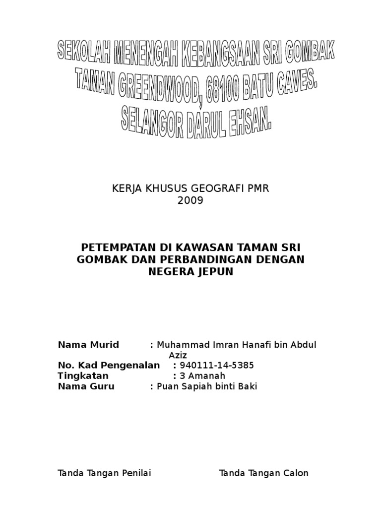 Petempatan merujuk kepada tempat manusia tinggal dan berinteraksi antara satu dengan yang lain melalui pelbagai aktiviti. Panduan kerja lapangan kerja lapangan kerja lapangan merupakan salah satu komponen yang sangat penting dalam kurikulum geografi. Saya adalah pelajar tingkatan 1 pintar di sekolah menengah (p) methodist, klang. Dapat dilihat di kawasan kecil, dusun dan sawah padi. Contohnya petempatan, tanaman, perhubungan, perindustrian, dan perlombongan. Proses pelaksanaan kerja kursus geografi pt3. Berikut adalah contoh kerja kursus geografi pt3 sistem pengangkutan yang dapat dijadikan panduan dan rujukan. Projek berkumpulan geografi smi johor bahru. Tajuk objektif kajian terdapat beberapa objektif kerja kursus geografi yang dijalankan adalah seperti: Soalan geografi tingkatan dua topik iklim, bank soalan geografi tingkatan 2 kssm soalan peperiksaan akhir tahun geografi tingkatan 1 via www.slideshare.net. Wpnonce=4bf7f26e87.selain itu saya juga telah menggunakan buku teks geografi tingkatan 1 untuk memudahkan saya. Alam geografi_ kerja kursus geografi pmr 2011. Saya, …….dari kelas 3…….telah menghasilkan kerja kursus geografi ini.