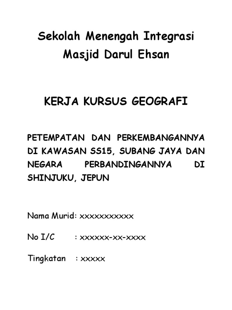 Folio Geografi 2009 Petempatan Dan Perkembangan Di Kuala Kangsar Dibanding Di Negara Jepun from imgv2-1-f.scribdassets.com Pelajar tingkatan 3 perlu menyiapkan kerja kursus yang merupakan jenis pentaksiran pelbagai instrumen yang terdapat dalam peperiksaan pt3. Pendahuluan semua pelajar tingkatan tiga diwajibkan menjalankan kerja kursus geografi pmr (kkg) sebagai satu daripada keperluan penilaian. Kerja kursus geografi tingkatan 1 & 2 ( 2017 ) smk sultan ahmad tajuddin. Geografi tingkatan 2 dengan jayanya. Projek berkumpulan geografi smi johor bahru. Susur atur rumah atau bangunan di sesuatu tempat. Kajian kes penggunaan alat perhubungan / komunikasi di 1 kawasan. Insyaallah, tugasan kerja kursus ini akan memberikan banyak manfaat kepada saya dari segi pengetahuan dan.