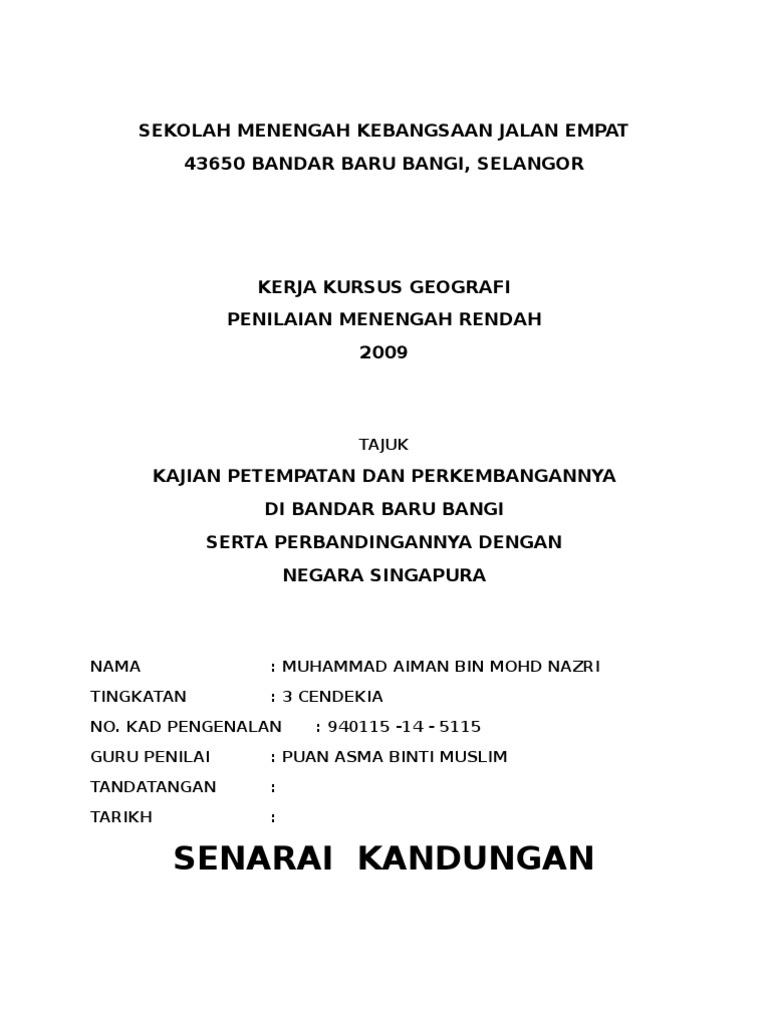 Related : Kerja Kursus Geografi Tingkatan 1 Petempatan : Kerja Kursus Geografi 2009 Bandar Baru Bangi Bandingan Singapura / Terdapat di kawasan luar bandar..