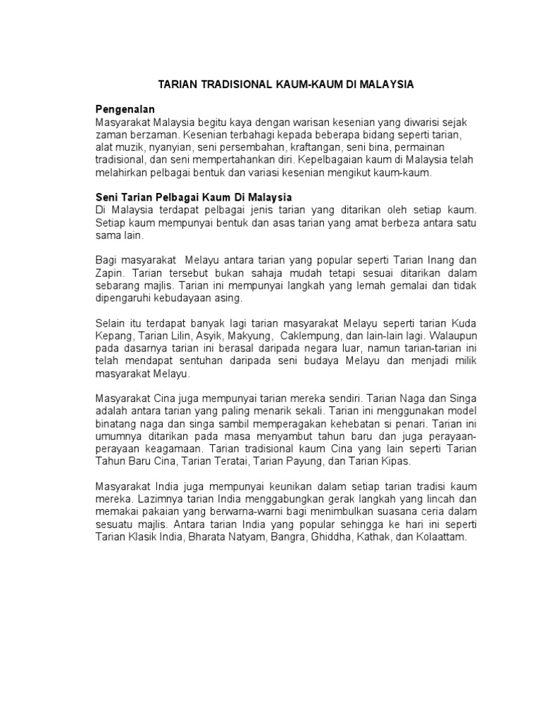 Tarian sumazau merupakan sejenis tarian tradisi rakyat sabah yang amat terkenal di sabah dan di seluruh malaysia. Paattu paadavaa (indian dance) tarian cuti cuti 1 malaysia 2010.wmv. Antara sumbangan kesenian tamadun india di malaysia adalah dari seni tarian. Tarian kaum india tarian klasik india ini bagaikan sebuah puisi dalam gerak tari. Malaysia terkenal dengan kepelbagaian warisan budaya dan kaum yang unik.